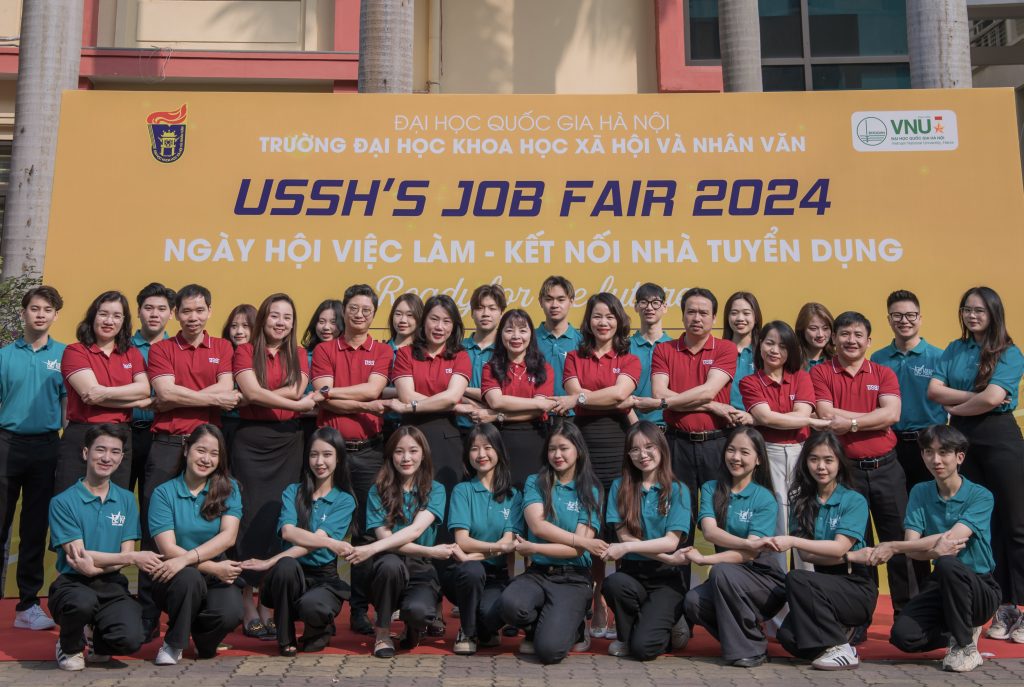 Xuân Việt tham gia truyền thông cho sự kiện của trường cùng các thầy cô giảng viên và các sinh viên tiêu biểu