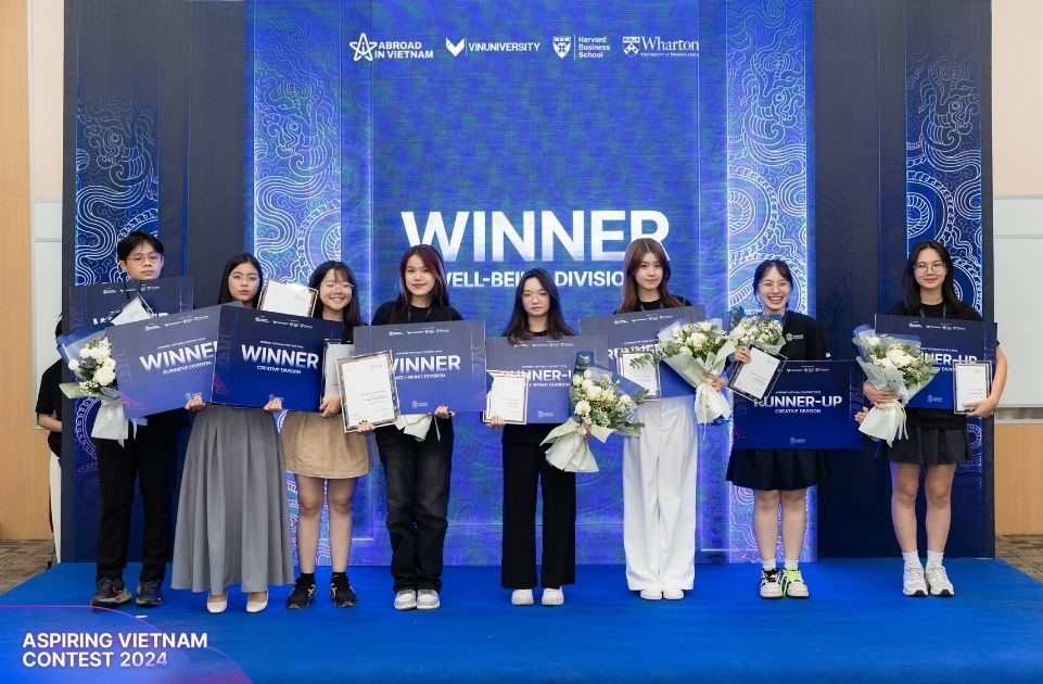 Vào ngày 26/10/2024, Abroad in Vietnam đã tổ chức thành công sự kiện chung kết Cuộc thi Khởi nghiệp dành cho học sinh THPT toàn quốc Aspiring Vietnam Contest 2024 mùa đầu tiên, diễn ra trực tiếp tại Đại học VinUni. Bảng vàng chung cuộc đã vinh danh 8 “hiền tài” đến từ khắp mọi miền đất nước.