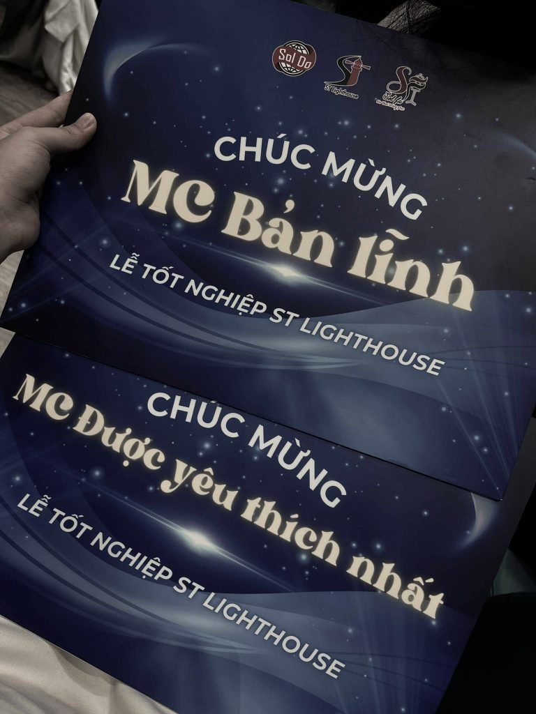 Cô gái xuất sắc nhận danh hiệu “MC Bản Lĩnh” và “MC Được Yêu Thích Nhất” tại lễ tốt nghiệp khóa MC Cơ bản 85 của ST Lighthouse
