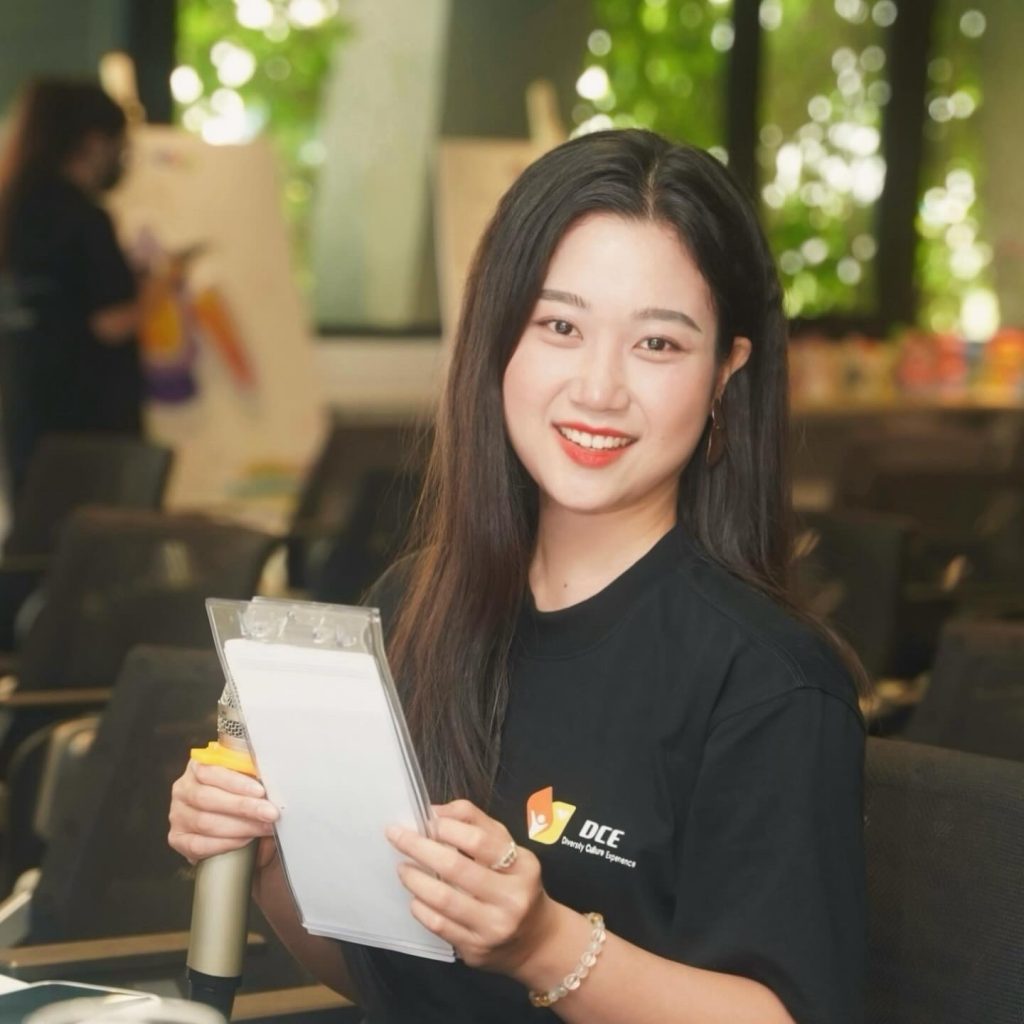Cô cho biết: “Trong suốt thời gian ngồi trên ghế nhà trường từ những năm cấp ba đến đại học, mình dành khá nhiều thời gian cho các hoạt động sáng tạo như viết kịch bản, diễn xuất, tổ chức sự kiện, và tham gia vào đội văn nghệ của trường. Những hoạt động này giúp mình tìm ra niềm đam mê với sân khấu và kỹ năng giao tiếp.”