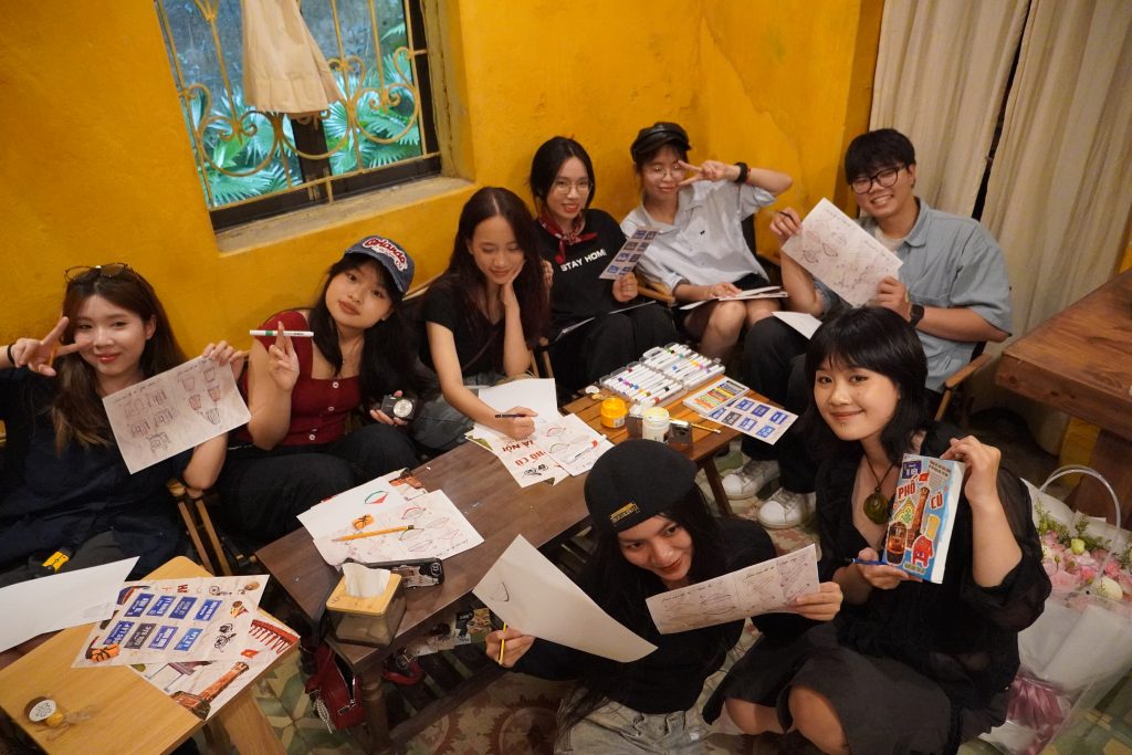 Trong khuôn khổ triển lãm, workshop vẽ tranh “Họa đô” cũng thu hút sự quan tâm của nhiều bạn trẻ. Lấy cảm hứng từ những biểu tượng đặc trưng của Hà Nội, hoạt động này mời người tham gia trực tiếp tạo nên tác phẩm mang dấu ấn cá nhân.