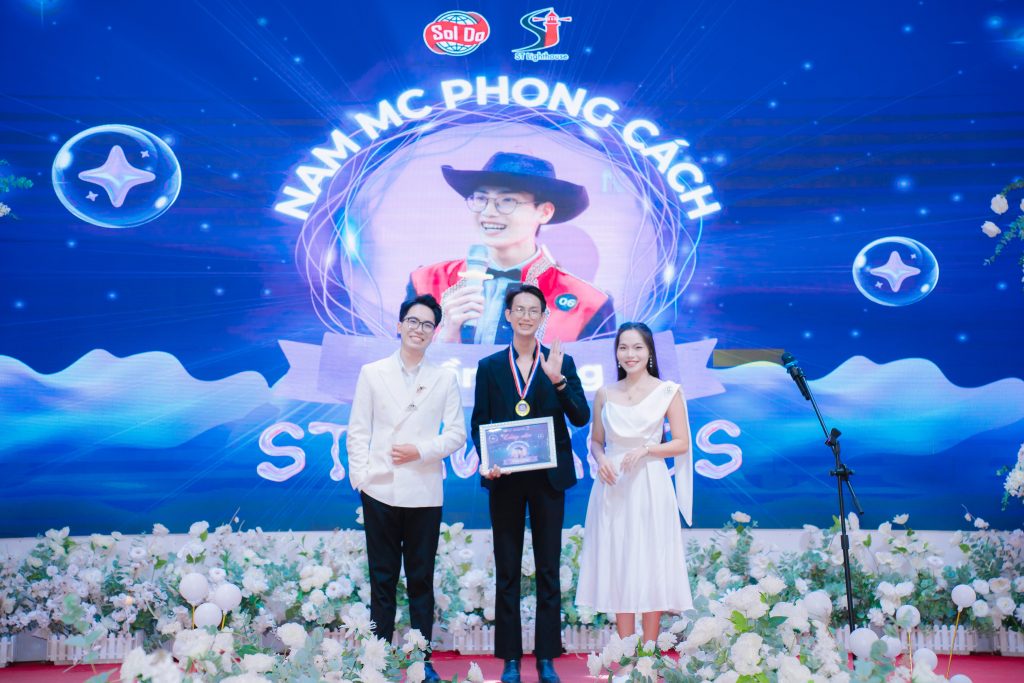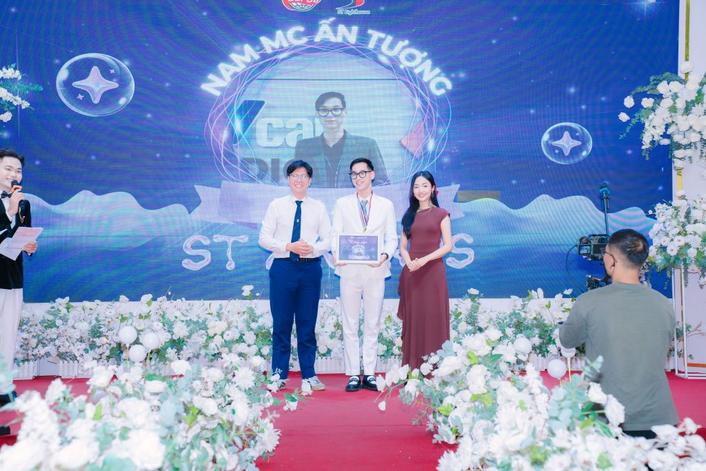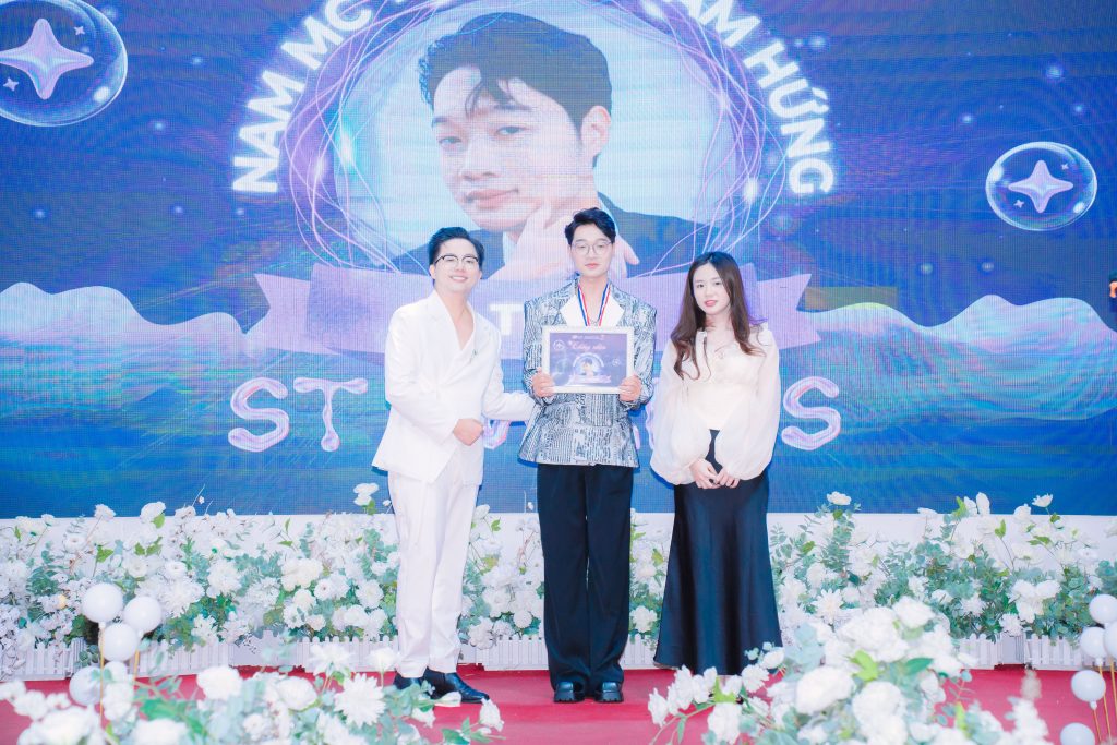 Ngay từ phần mở đầu, không khí buổi lễ đã trở nên sôi động khi cặp đôi Phạm Hoàng Long và Mai Xuân lên trao giải cho hạng mục Nam MC Phong Cách. Giải thưởng này thuộc về MC Trần Long, người luôn gây ấn tượng với phong cách dẫn tự tin, chuyên nghiệp.