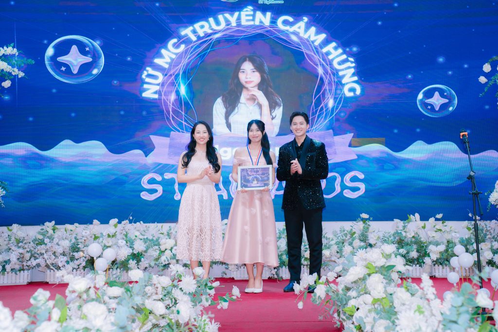 Giải thưởng Nữ MC Ấn Tượng được trao cho MC Thủy Tiên bởi Ngọc Sơn và Phạm Hoàng Long, đánh dấu một năm thành công của cô với phong cách dẫn truyền cảm và cuốn hút.