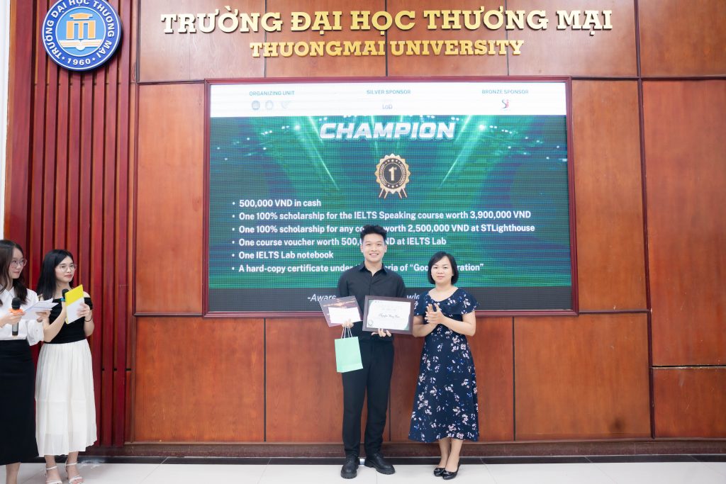 - Quán quân cuộc thi tranh biện – hùng biện tiếng Anh “Know and Grow” tại Đại học Thương mại