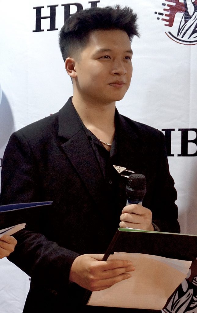 Huy Phúc đầy tự hào trong khoảnh khắc nhận giải Quán quân cuộc thi tranh biện – hùng biện tiếng Anh “Know and Grow”.