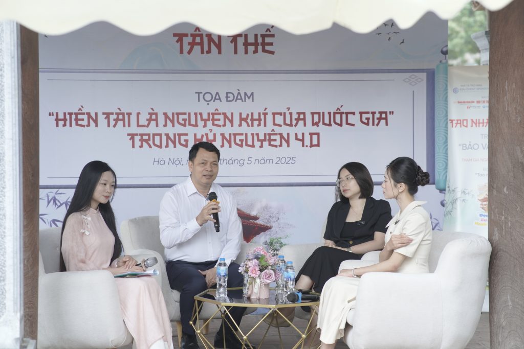 Tham dự tọa đàm có TS Lê Xuân Kiêu – Giám đốc Trung tâm Hoạt động Văn hóa Khoa học Văn Miếu – Quốc Tử Giám, chị Nguyễn Thái Hà – CEO Công ty Cổ phần JOHN HUNT và bạn Nguyễn Thị Khánh Huyền – Hoa khôi Cuộc thi Tài sắc nữ sinh Báo chí 2025 đã cùng chia sẻ góc nhìn đa chiều về vai trò của hiền tài trong xã hội hiện đại. Những câu chuyện về hiền tài trong lịch sử được đối chiếu với thực tế hôm nay, gợi mở cho người trẻ cách phát huy bản lĩnh cá nhân trong bối cảnh toàn cầu hóa, đồng thời vẫn giữ gìn những giá trị cốt lõi của dân tộc.