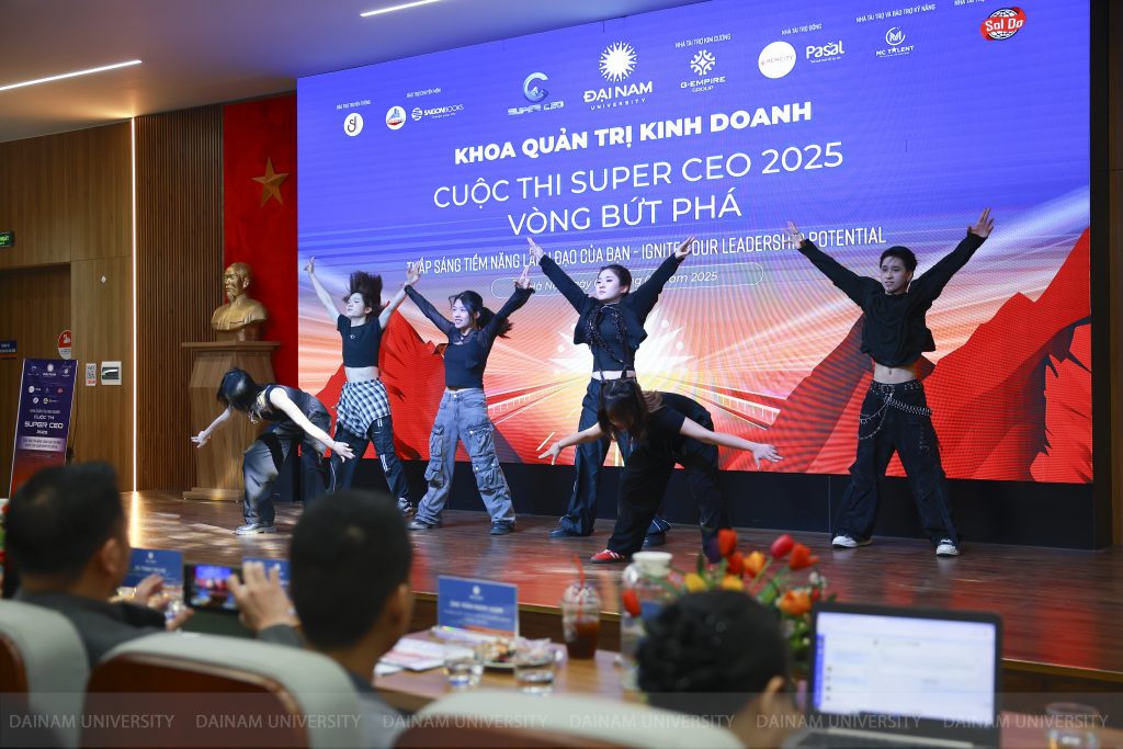 Mở đầu chương trình là những tiết mục văn nghệ sôi động, tạo không khí hứng khởi cho một ngày thi đầy thử thách. Sự hiện diện của Ban lãnh đạo Trường Đại học Đại Nam, đại diện khoa QTKD, các đối tác doanh nghiệp uy tín và đặc biệt là Hội đồng Ban Giám khảo cũng như các vị mentor dày dặn kinh nghiệm đã khẳng định uy tín và tầm quan trọng của cuộc thi. Super CEO không chỉ là một cuộc thi, mà còn là nơi ươm mầm và phát triển những nhà lãnh đạo tương lai, trang bị cho sinh viên những kỹ năng cần thiết để thành công trong môi trường kinh doanh đầy cạnh tranh.