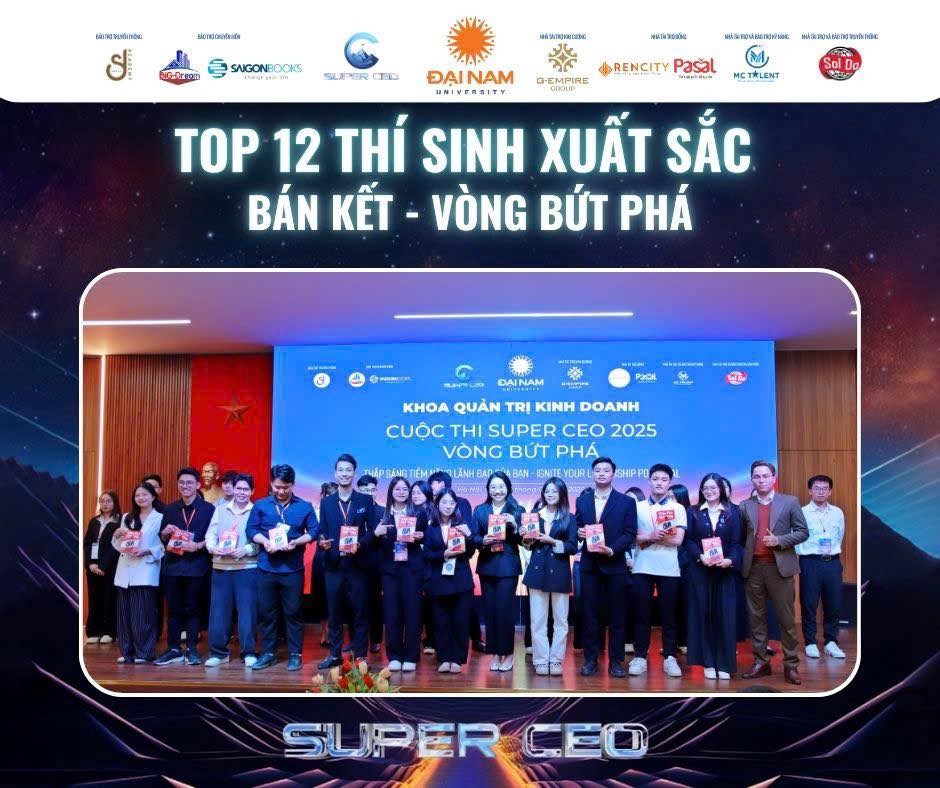 Vòng Bán kết “Bứt phá” của Super CEO 2025 đã khép lại thành công tốt đẹp, để lại nhiều ấn tượng sâu sắc trong lòng khán giả và đặc biệt là các thí sinh tham gia. Đây thực sự là một sân chơi bổ ích, góp phần quan trọng vào việc nâng cao chất lượng đào tạo và phát triển toàn diện cho sinh viên khoa Quản trị Kinh doanh Trường Đại học Đại Nam nói chung và sinh viên các Trường Đại học khu vực miền Bắc nói chung. Cuộc thi là cơ hội để sinh viên rèn luyện tư duy lãnh đạo, kỹ năng chiến lược đối mặt với thử thách. Đồng thời là cơ hội giúp sinh viên kết nối với các chuyên gia, mở rộng cơ hội cho nghề nghiệp tương lai. Hãy cùng chờ đón những màn thể hiện bùng nổ tiếp theo của Top 12 tại vòng Chung kết – Chinh phục Super CEO 2025 diễn ra vào ngày 15/04 sắp tới.